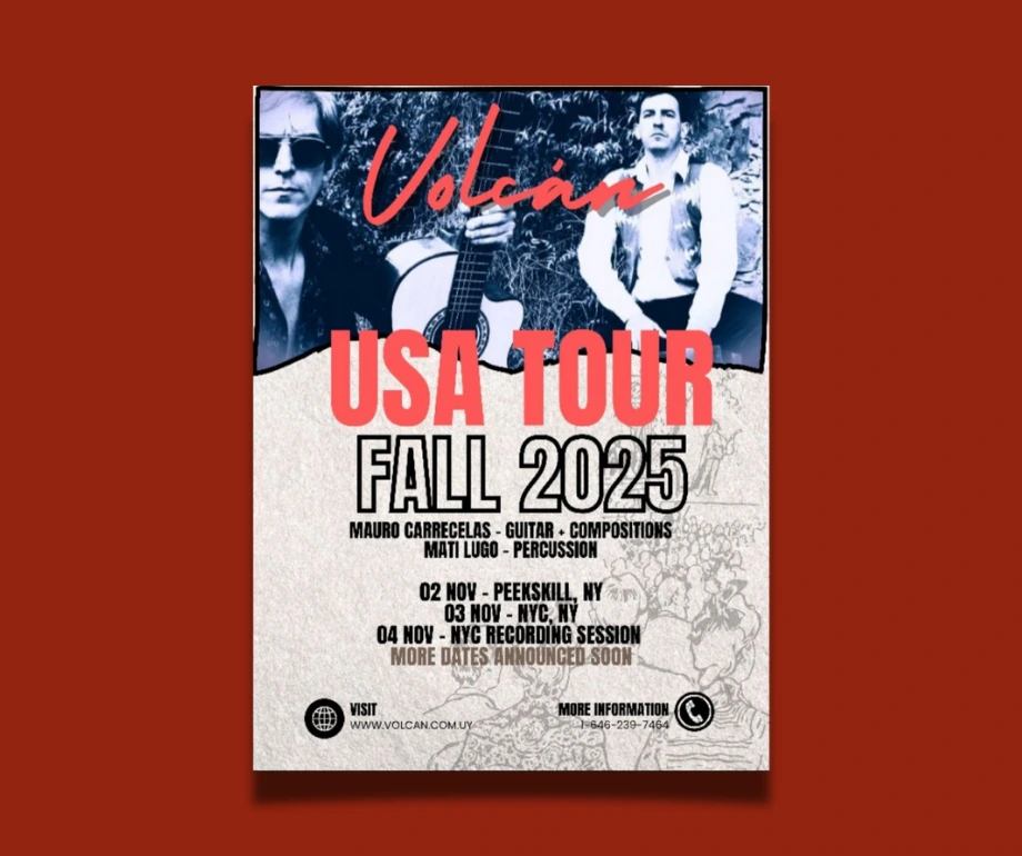 Afiche del tour de Volcán en Nueva York. Volcán, de Mauro Carrecelas acompañado por Matías Lugo, confirmó una gira por…